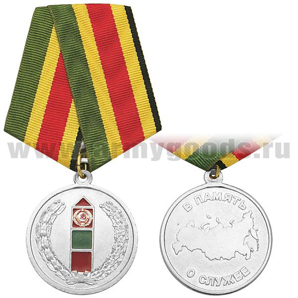Медаль В память о службе (пограничный столб, контур РФ) серебр.