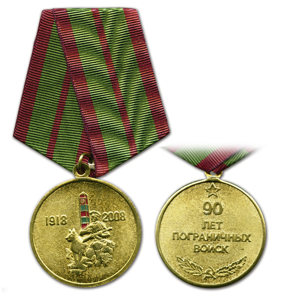 Медаль 90 лет пограничных войск (пограничник с собакой)