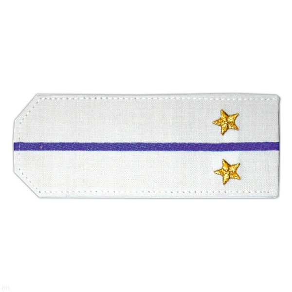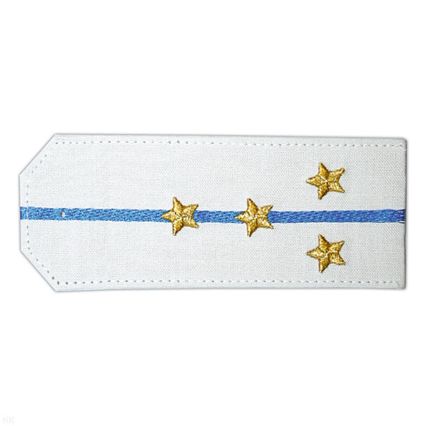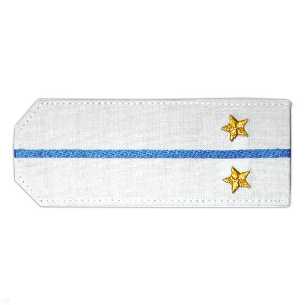 Погоны «машинная вышивка» из рубаш. ткани белые с 1 вышит. голуб. просв. с вышит. звездами (капитан)