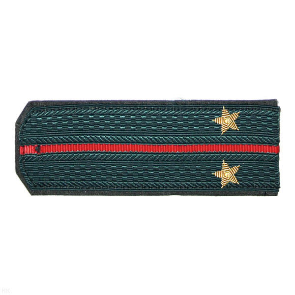 Погоны «машинная вышивка» из рубаш. ткани белые с 1 вышит. зел. просв. с вышит. звездами (лейтенант)