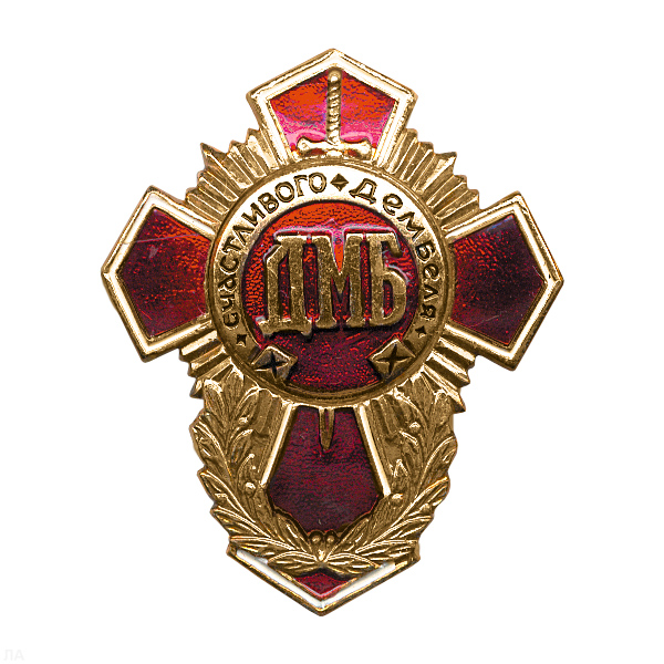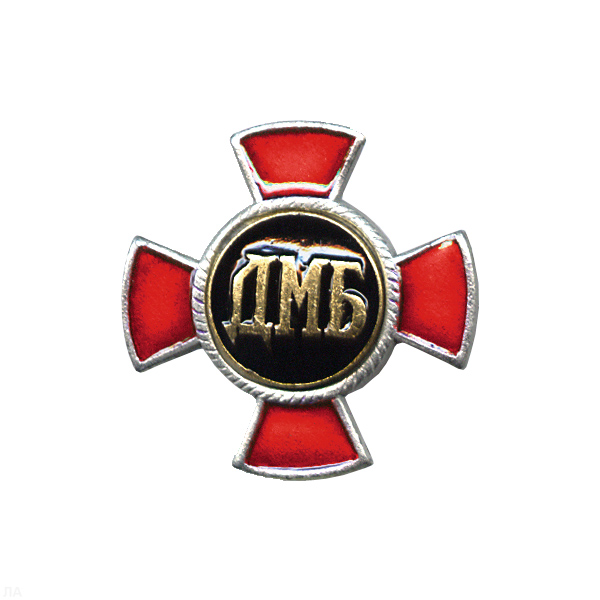 Значок мет. ДМБ счастливого дембеля (красн. крест с красн./черн. серед.)