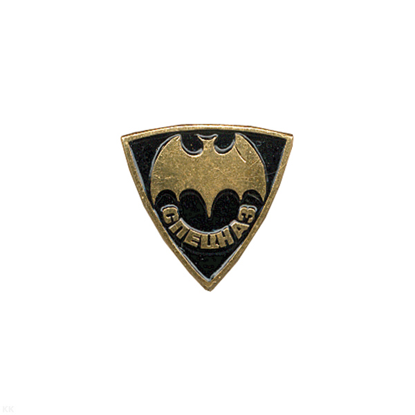 Значок мет. Летуч. мышь на бел. щите с мечом