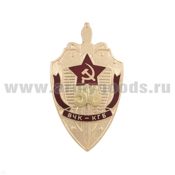 Значок мет. 50 лет ВЧК-КГБ (щит) с накладными золотыми цифрами
