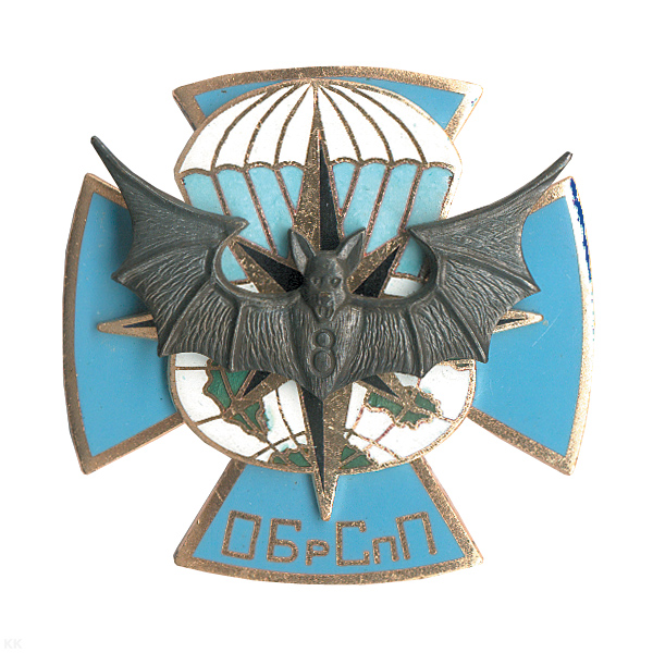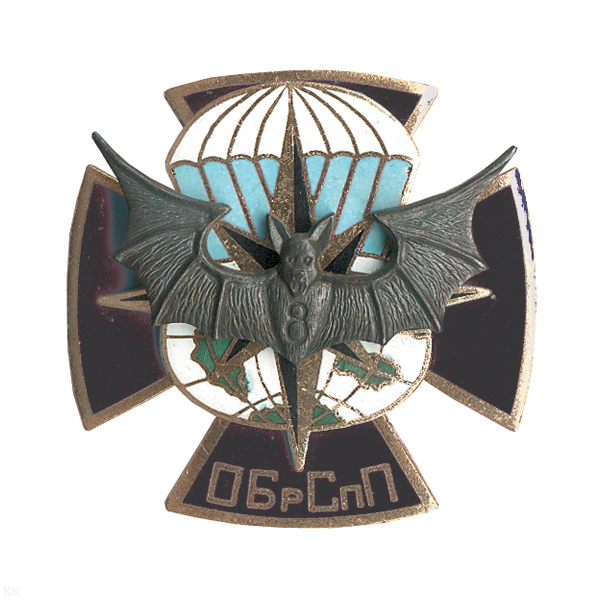 Значок мет. ОБрСпП летуч. мышь, крест (красн.) гор. эм.