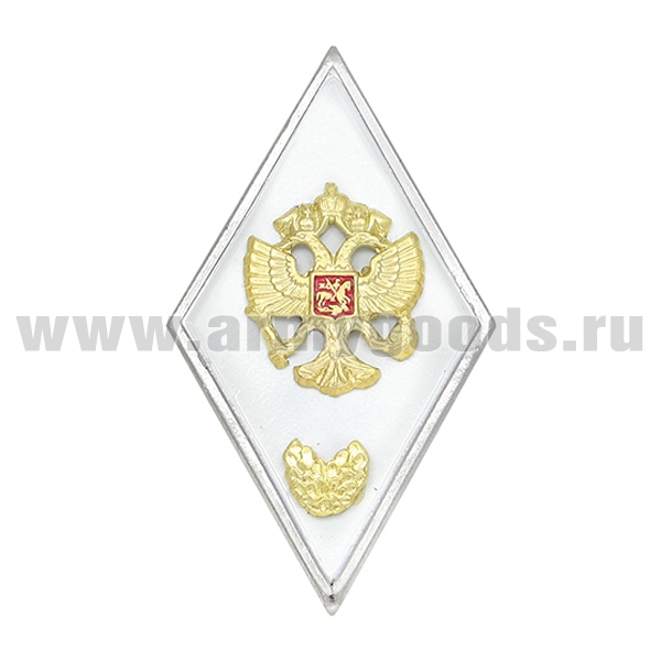 Значок мет. Ромб ВА / ВУ обр. 2007 г. с отличием (белый с серебр. кантом, с ветвями - высшая военная оперативно-тактическая подготовка) хол. эм.