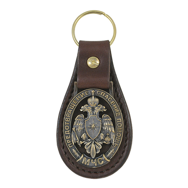 Брелок мет. (литье) на подкладке из нат. кожи МЧС (Предотвращение спасение помощь)