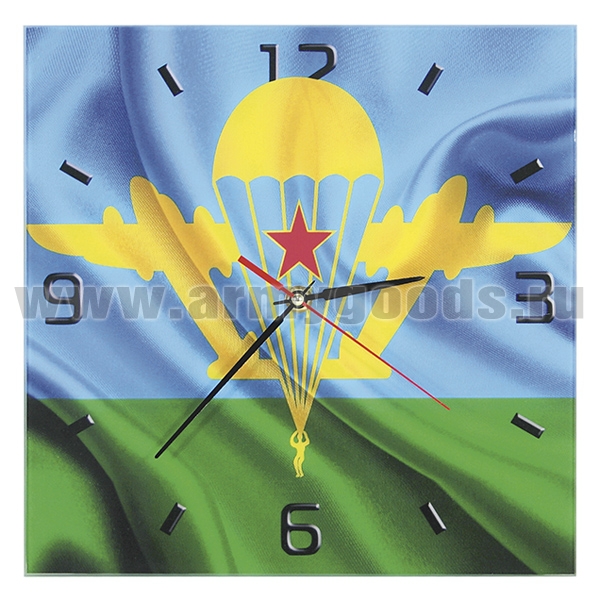 Часы настенные стеклянные ВДВ (эмблема со звездой) (28x28 см)