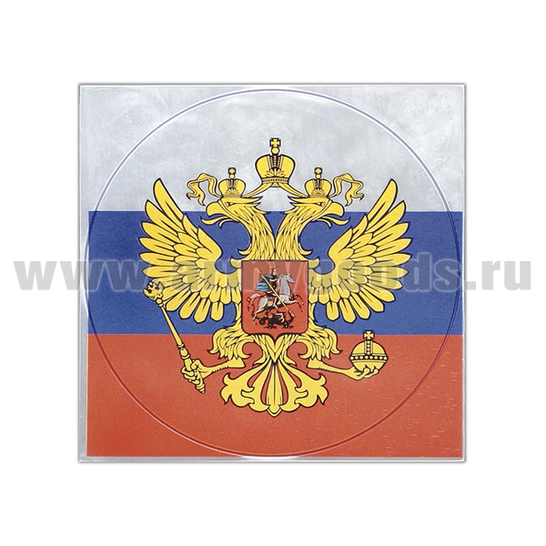 Наклейка светоотражающая круглая (d=12 см) Орел РФ на триколоре