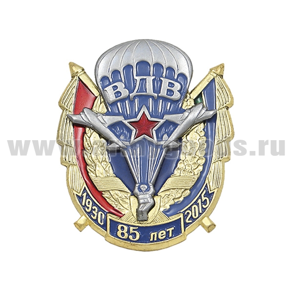 Значок мет. 85 лет ВДВ 1930-2015 (2 накладки: парашют со знаменами)