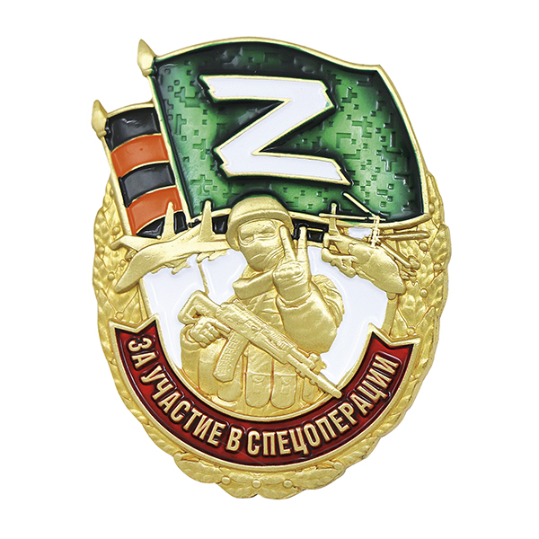 Значок мет. За участие в спецоперации Z (солдат показывает знак V)