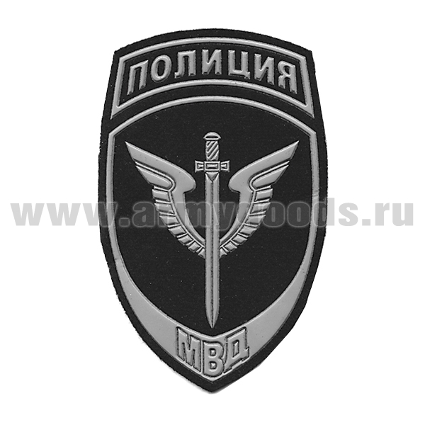 Шеврон пластизолевый Полиция МВД (общий) фон черный, краска серая ст/обр