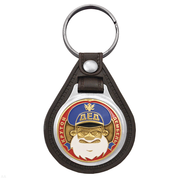 Брелок с эмблемой на виниловой подкладке Дед (крутой дембель) голуб.