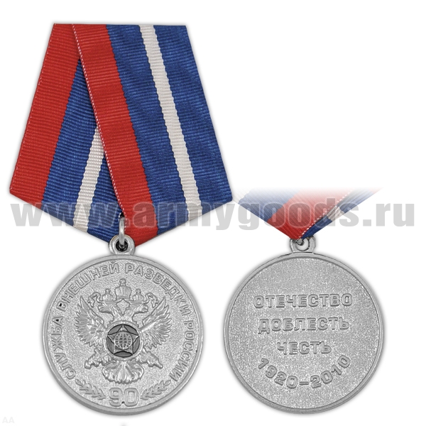 Медаль 90 лет службе внешней разведки России (Отечество, доблесть, честь)
