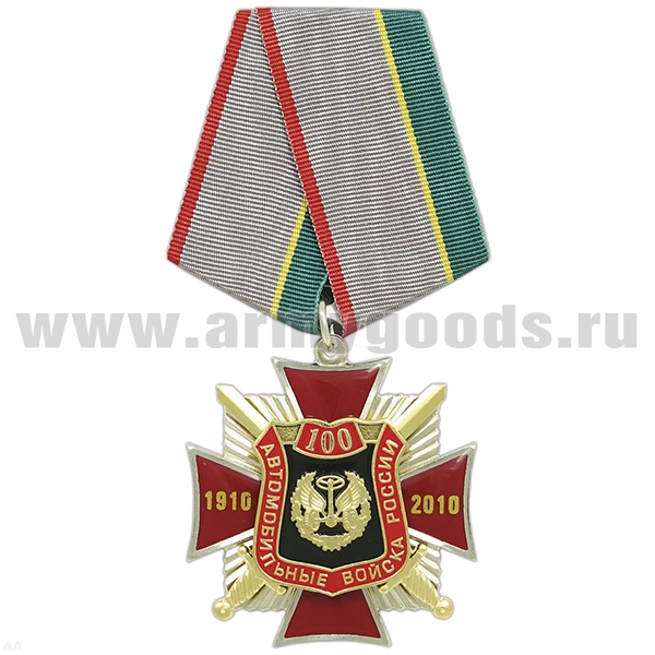 Медаль 100 лет Автомобильным войскам России (красн. крест с лучами, 2 накладки, заливка смолой)