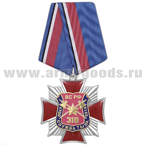 Медаль 310 лет Службе тыла ВС РФ (красн. крест с лучами, заливка смолой)