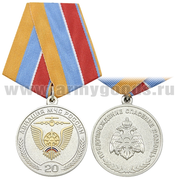 Медаль 20 лет Авиации МЧС России (серебрян.) (нейзильбер с позолотой)