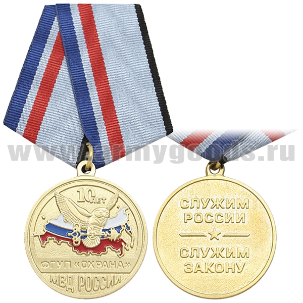 Медаль 10 лет ФГУП "Охрана" МВД России (Служим России Служим закону)