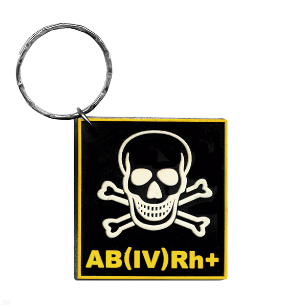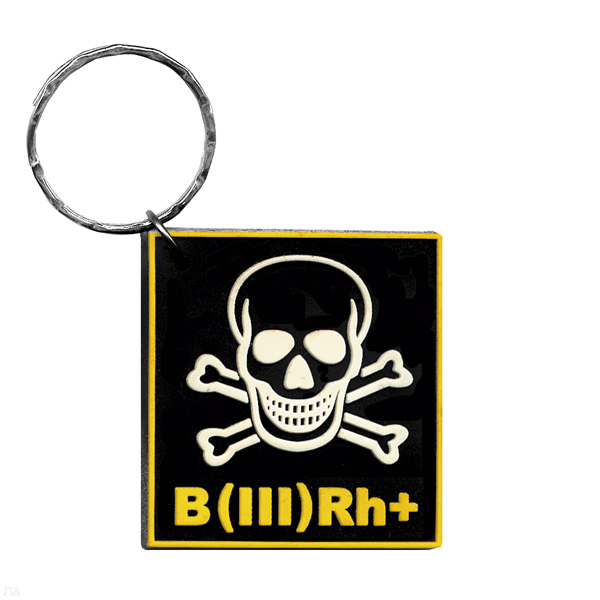 Брелок пластизол. Череп с костями 4 гр.крови (+)