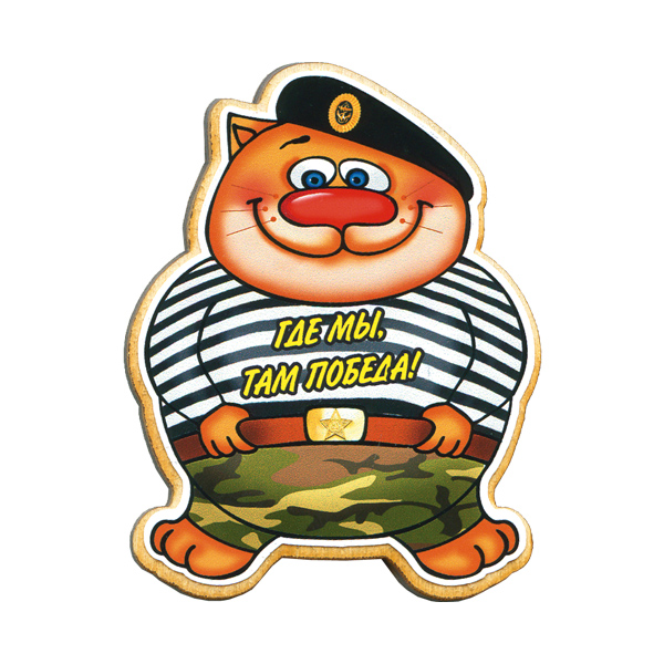 Магнит деревянный Кот в тельняшке (За ВДВ!)