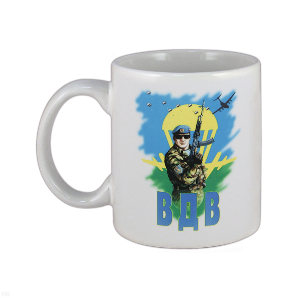 Кружка фарф. (0,3 л) ВДВ (Никто, кроме нас) десантник на фоне желтой эмблемы