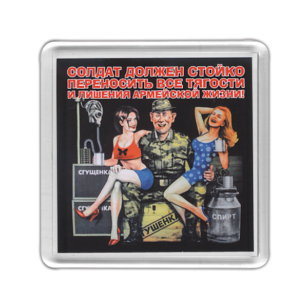Магнит пластиковый Солдат должен стойко переносить все тяготы и лишения армейской жизни!