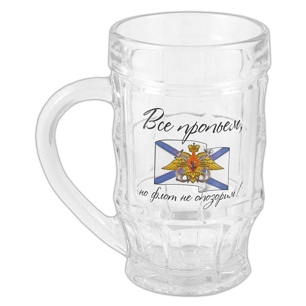 Кружка пивная стеклянная ВМФ (Все пропьем, но флот не опозорим!) 0,5 л