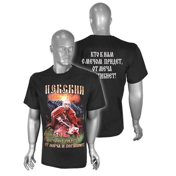 Футболка с рисунком краской Невский (Кто к нам с мечом придет, от меча и погибнет) черная
