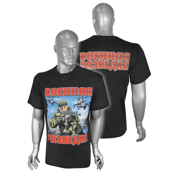 Футболка с рисунком краской Военная разведка Выше нас только звезды (черная)