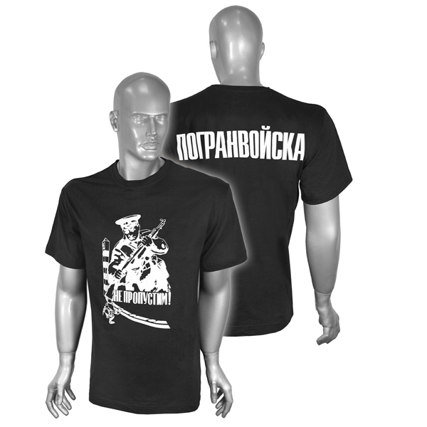Футболка с надп. белой краской черн. Погранвойска Не пропустим!