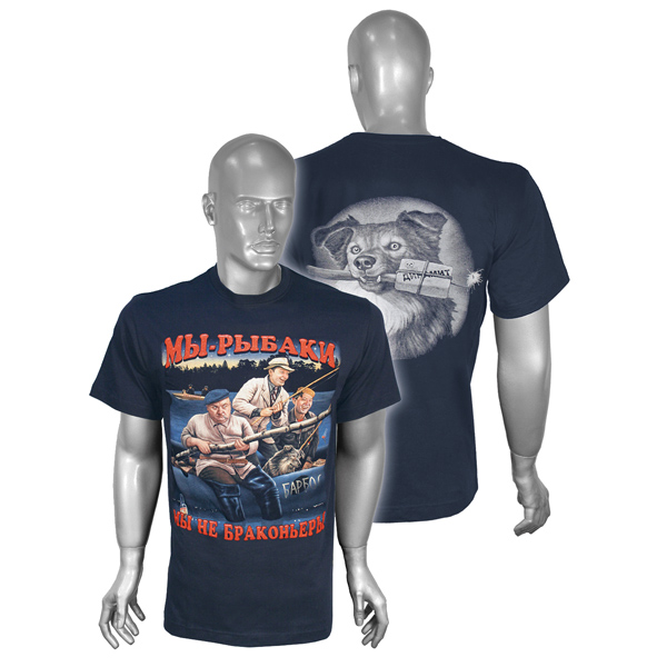 Футболка с рисунком краской Мы - рыбаки Мы не браконьеры (темно-синяя)