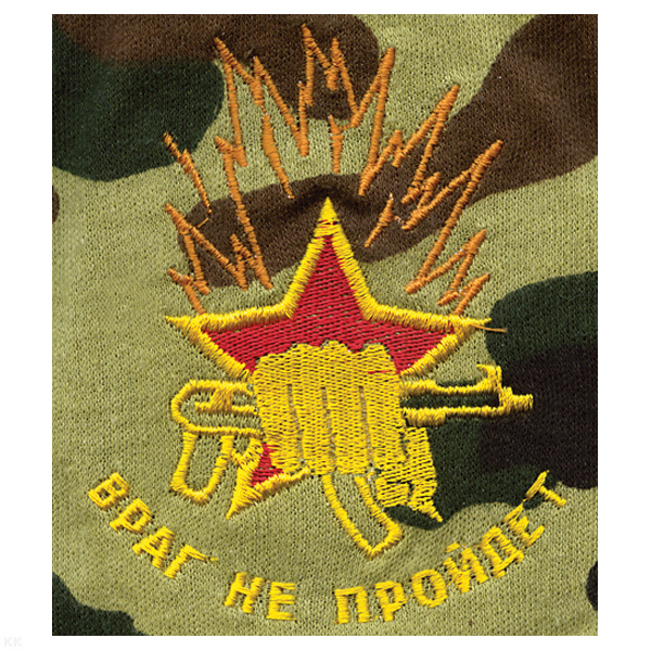Футболка с вышивкой на груди Враг не пройдет, зел. КМФ