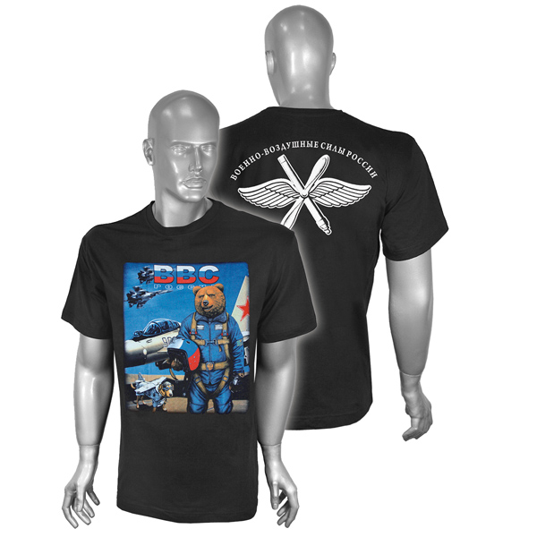 Футболка с рисунком краской ВВС России (медведь) черная