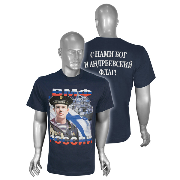 Футболка с рисунком краской ВМФ России С нами Бог и Андреевский флаг (темно-синяя)