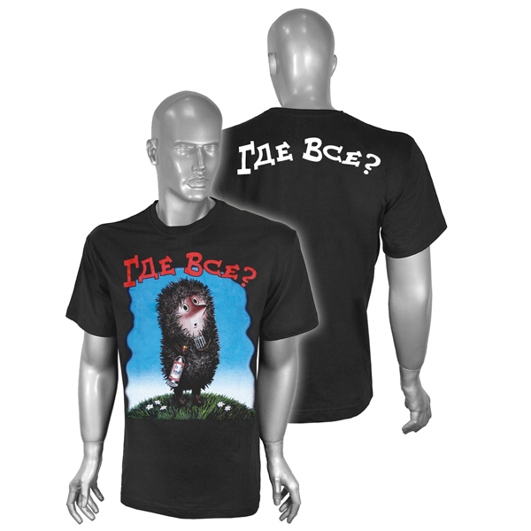 Футболка с рисунком краской Где все? (ёжик) черная