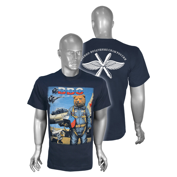 Футболка с рисунком краской ВВС России (медведь) темно-синяя