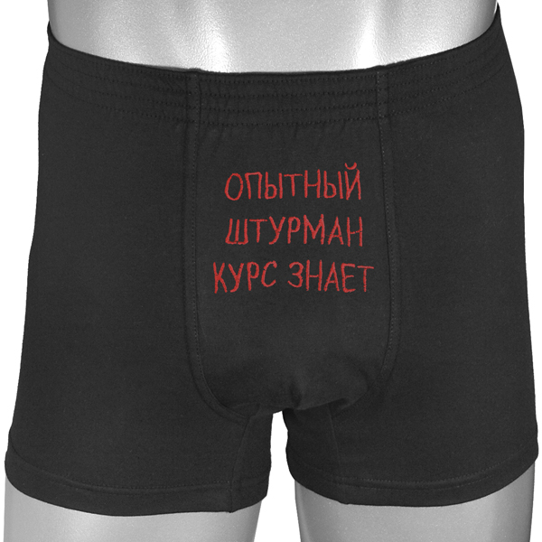 Трусы-шорты черные вышитые Опытный штурман курс знает