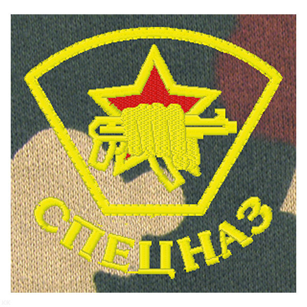 Футболка с вышивкой на груди Спецназ (кулак с автоматом) зел. КМФ