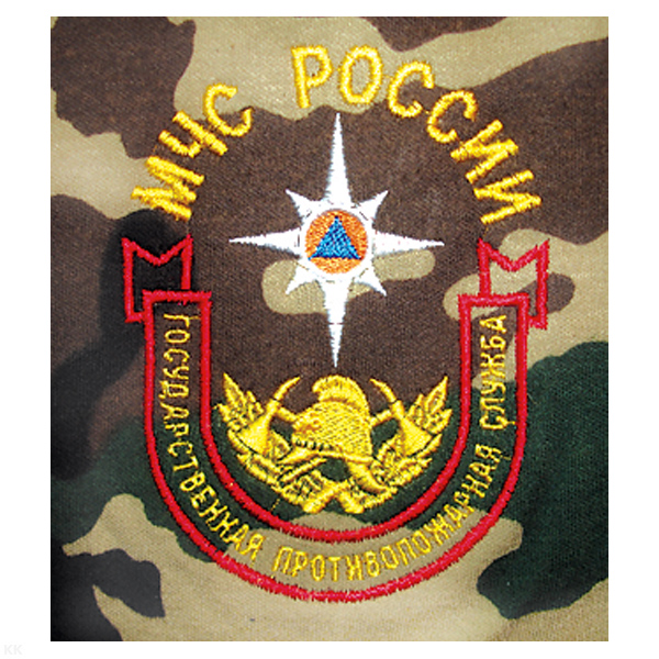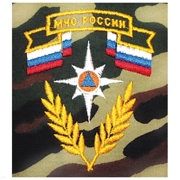 Футболка с вышивкой на груди МЧС России (эмблема с флагом) зел. КМФ