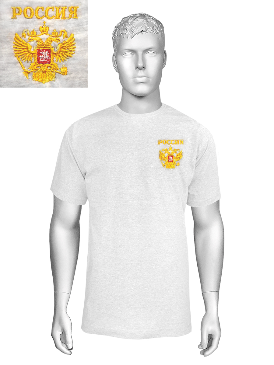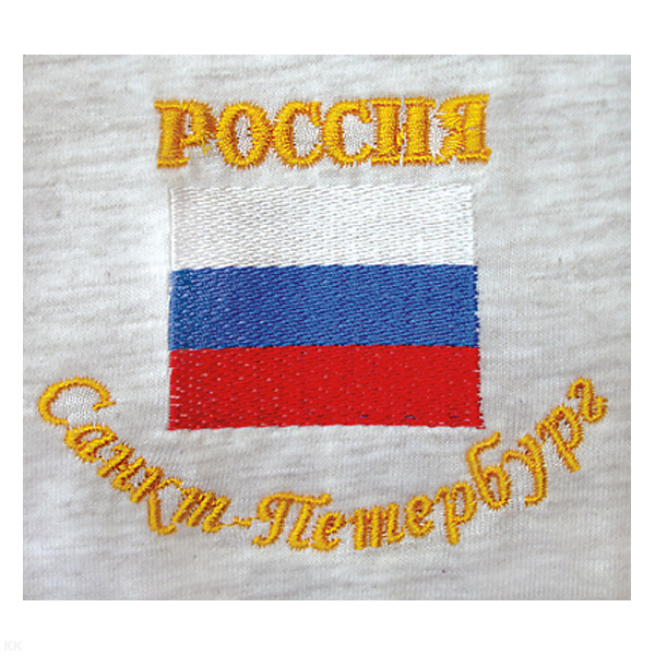 Футболка с вышивкой на груди Россия Санкт-Петербург (флаг РФ) серая