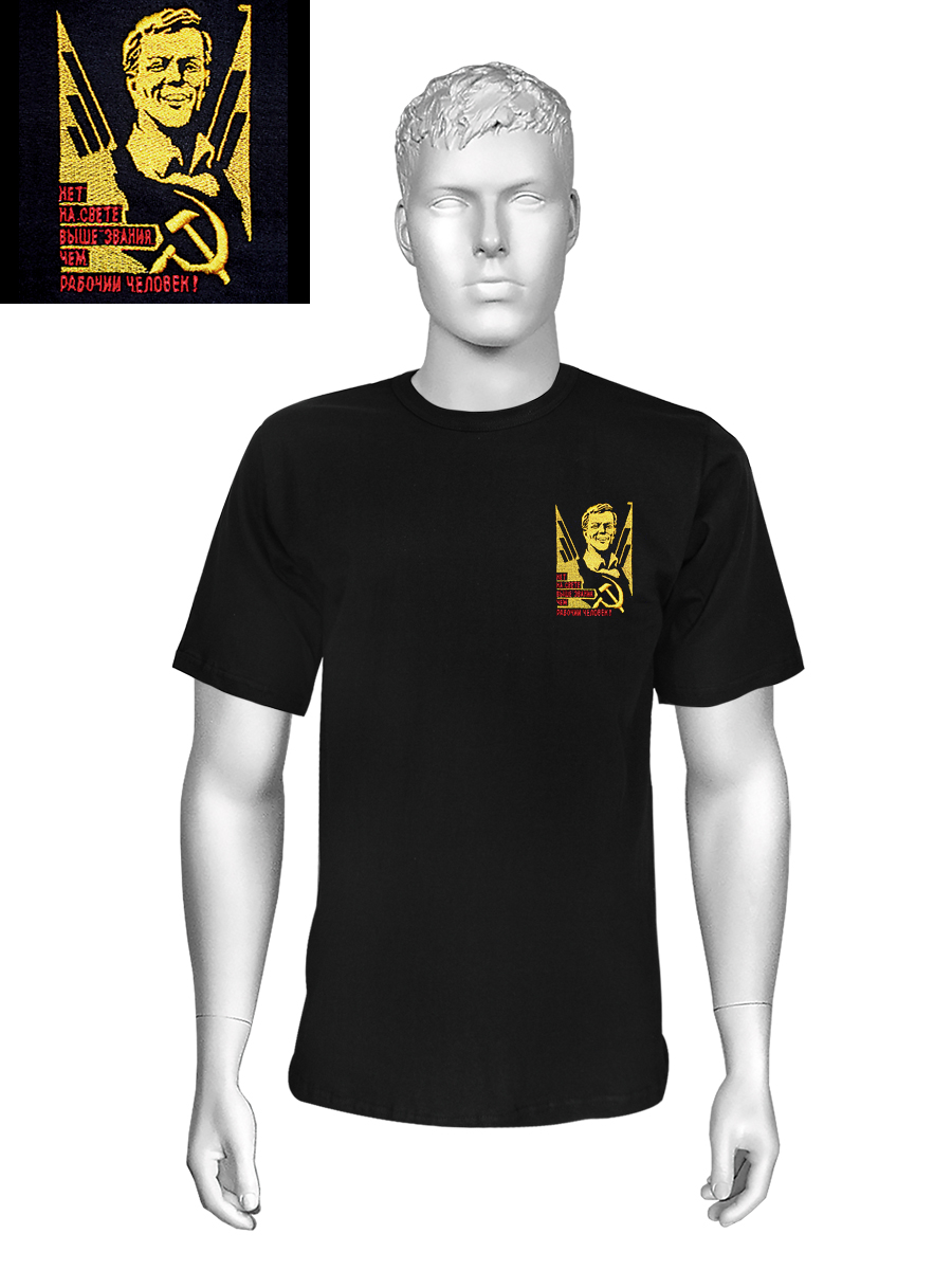 Футболка с вышивкой на груди Нет на свете выше звания, чем рабочий человек, черная