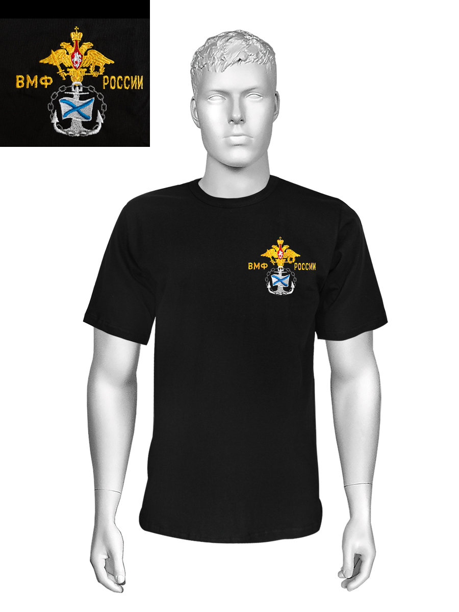 Футболка с вышивкой на груди ВМФ России, черн.