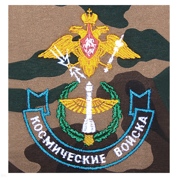 Футболка с вышивкой на груди Космические войска (орел и ракета) зел. КМФ