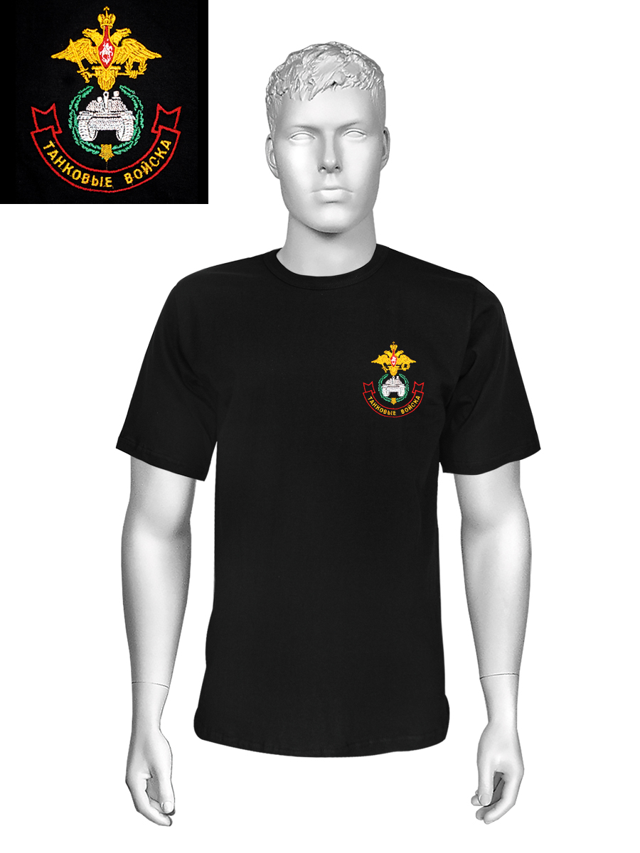 Футболка с вышивкой на груди Танковые войска (эмблема ст/обр) черн.