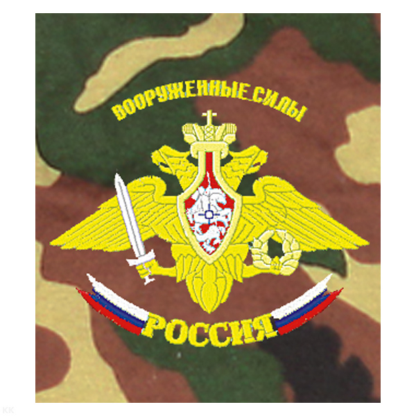 Футболка с вышивкой на груди Вооруженные силы Россия (орел и лента) зел. КМФ