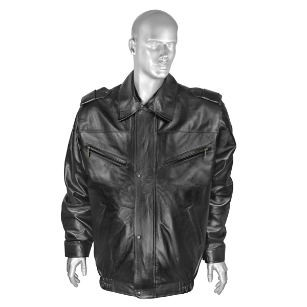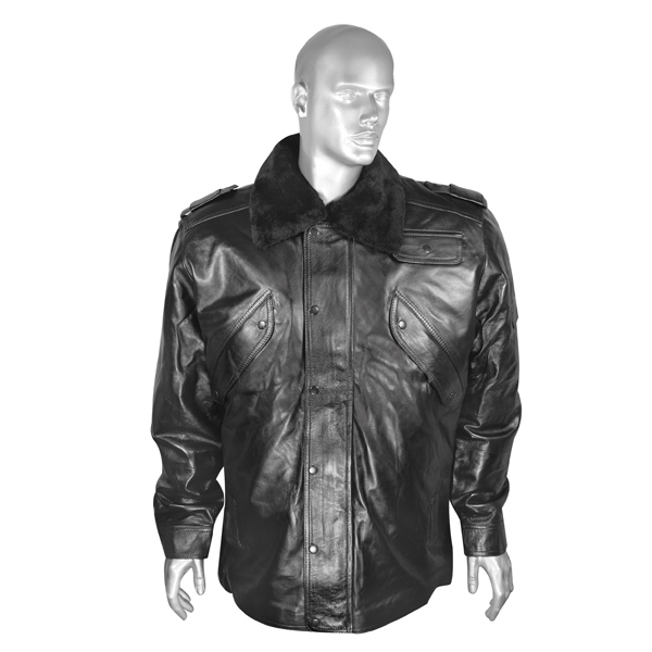 Кртк зим. кожаная (нат.мех) черная (меховая подкладка на молнии) форменная с косыми нагрудными карманами