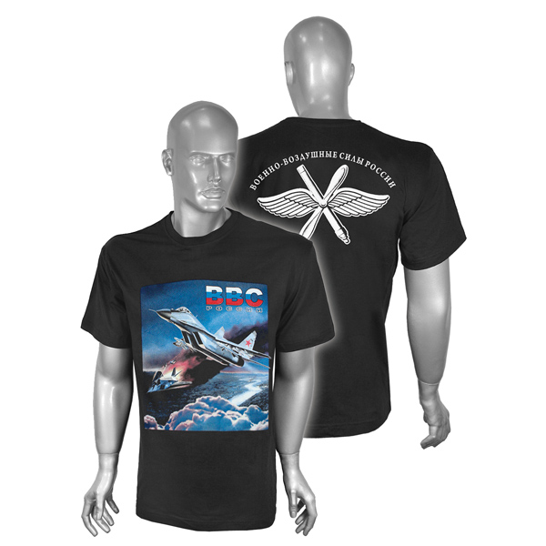 Футболка с рисунком краской ВВС России (2 самолета) черная