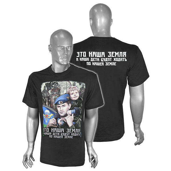 Футболка с рис краской ВДВ (Это наша земля и наши дети будут ходить по нашей земле) (черная)