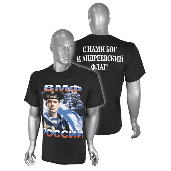 Футболка с рисунком краской ВМФ России С нами Бог и Андреевский флаг (черная)