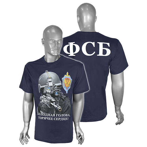 Футболка с рис краской ФСБ Холодная голова, горячее сердце! (синяя)