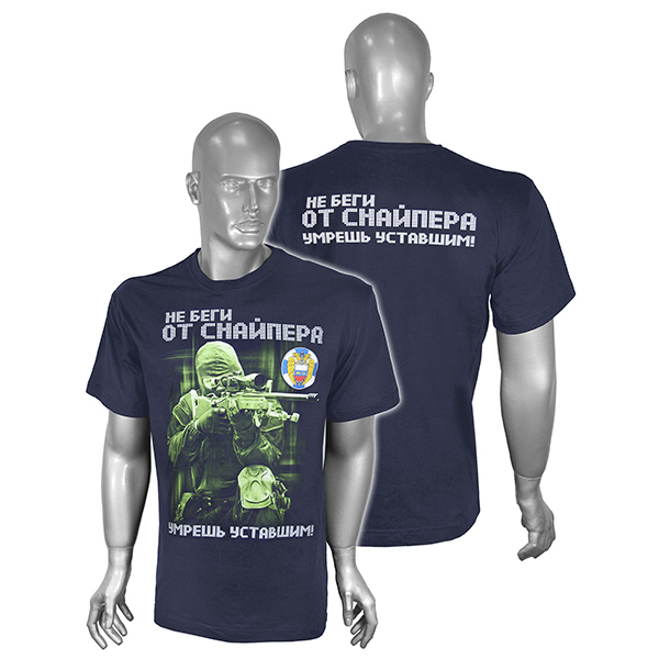 Футболка с рис краской ФСО Не беги от снайпера - умрешь уставшим! (синяя)